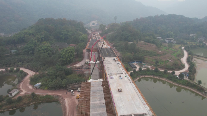 渝湘高铁石家冲四变二特大桥右线简支梁顺利完成