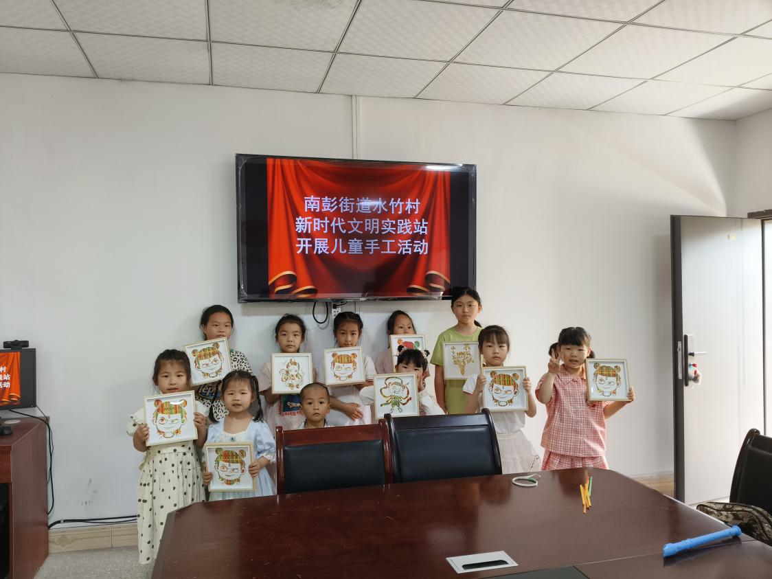 南彭街道水竹村新时代文明实践站开展“小小竹编师,非遗趣味学” 儿童手工竹编画活动