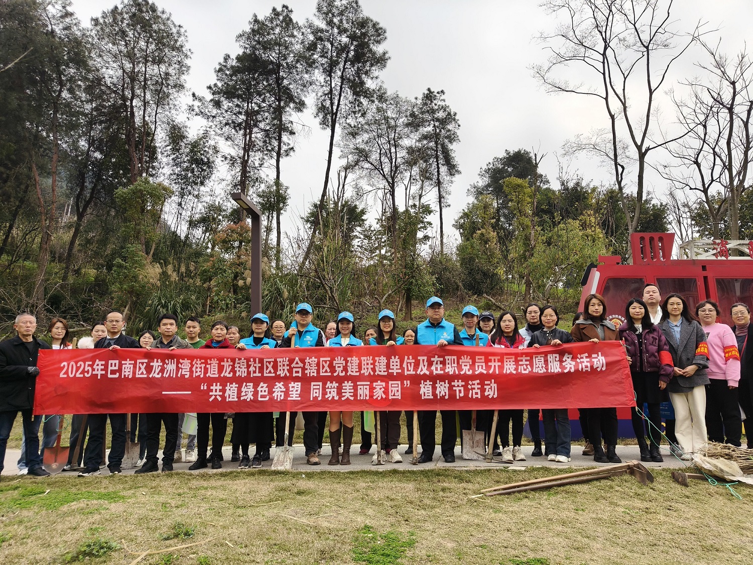 龙洲湾街道龙锦社区新时代文明实践站开展“共植绿色希望, 同筑美丽家园”植树节志愿服务活动