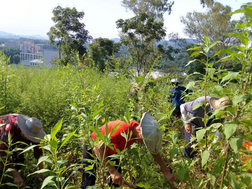 南彭街道鸳鸯村新时代文明实践站开展撂荒地除草志愿服务活动