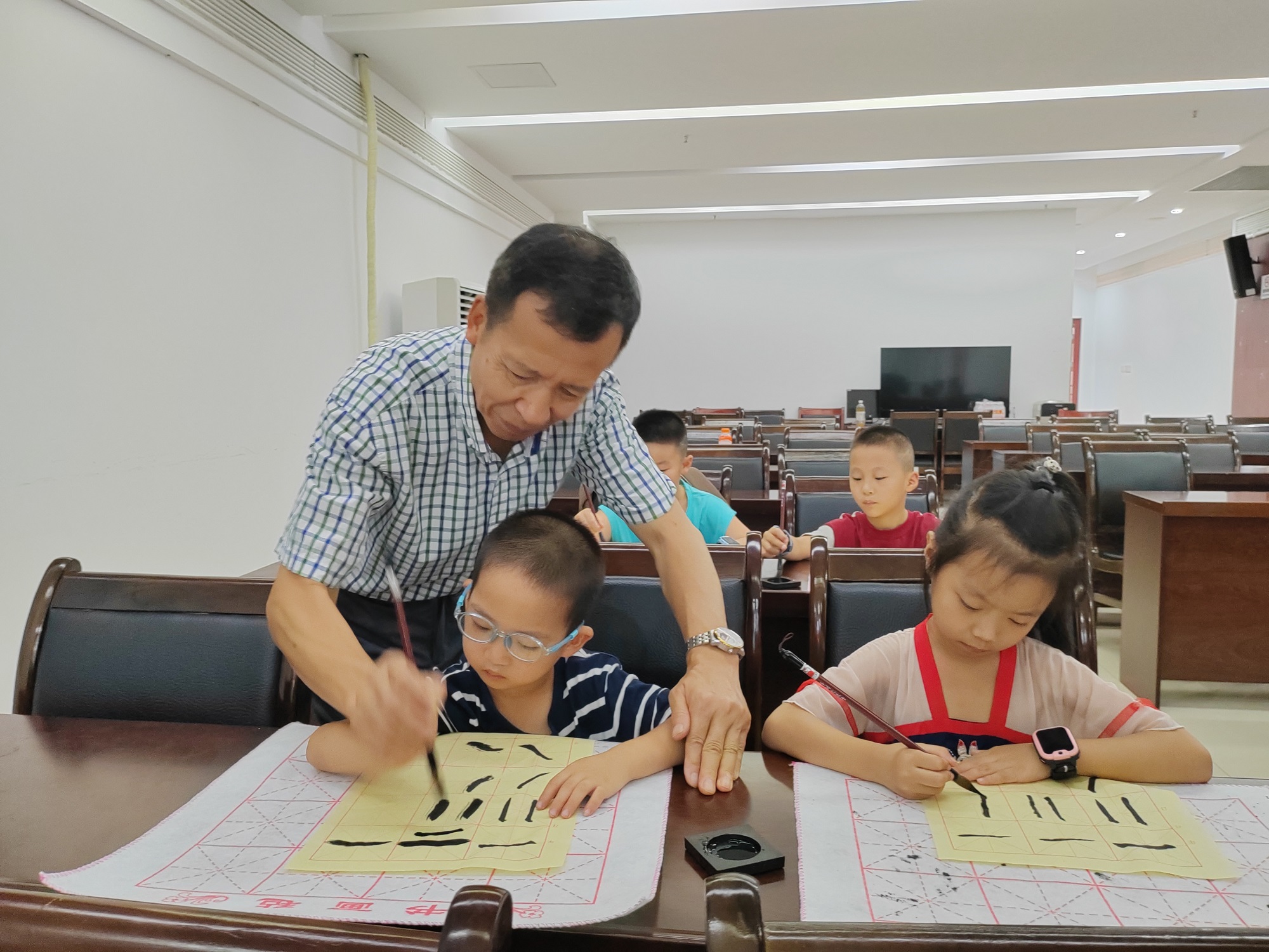 龙洲湾街道龙腾社区开展“享生活·悦邻里” “学好书法·传承文化”暑期书法体验活动